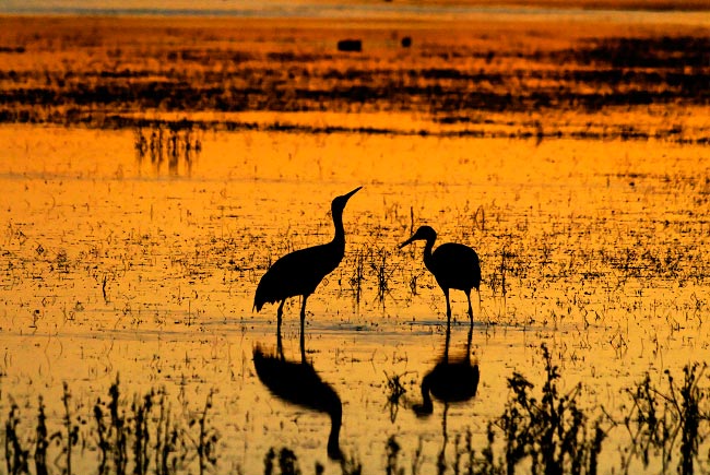 Last of the evening light - Sunset - Sandhill Cranes