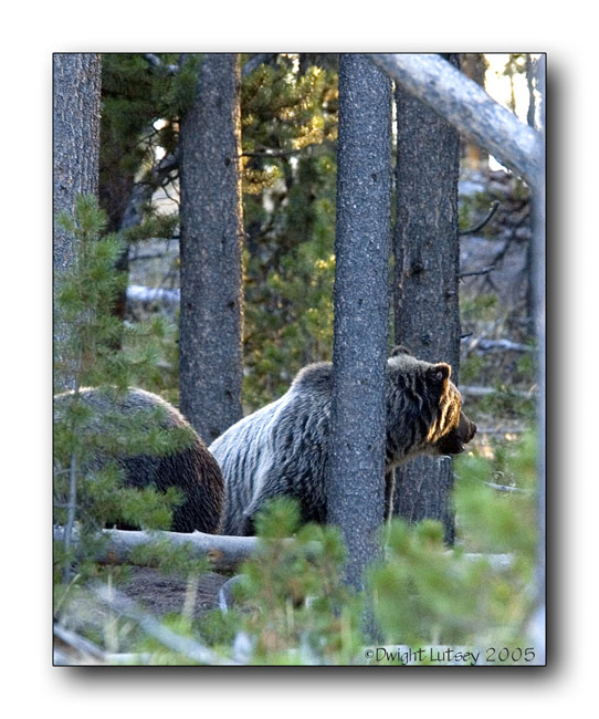 2457 - Female Grizzly and cub in the setting sun - Nez Perce creek