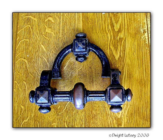 France 089 - Cast iron door knocker on hand grained door